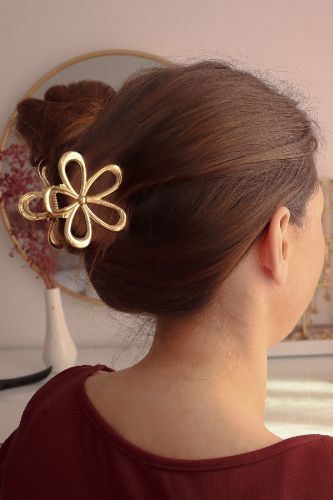 Tipp: Kombiniere deine Haarklammer mit goldfarbenen Schmuck für ein harmonisches Gesamtbild