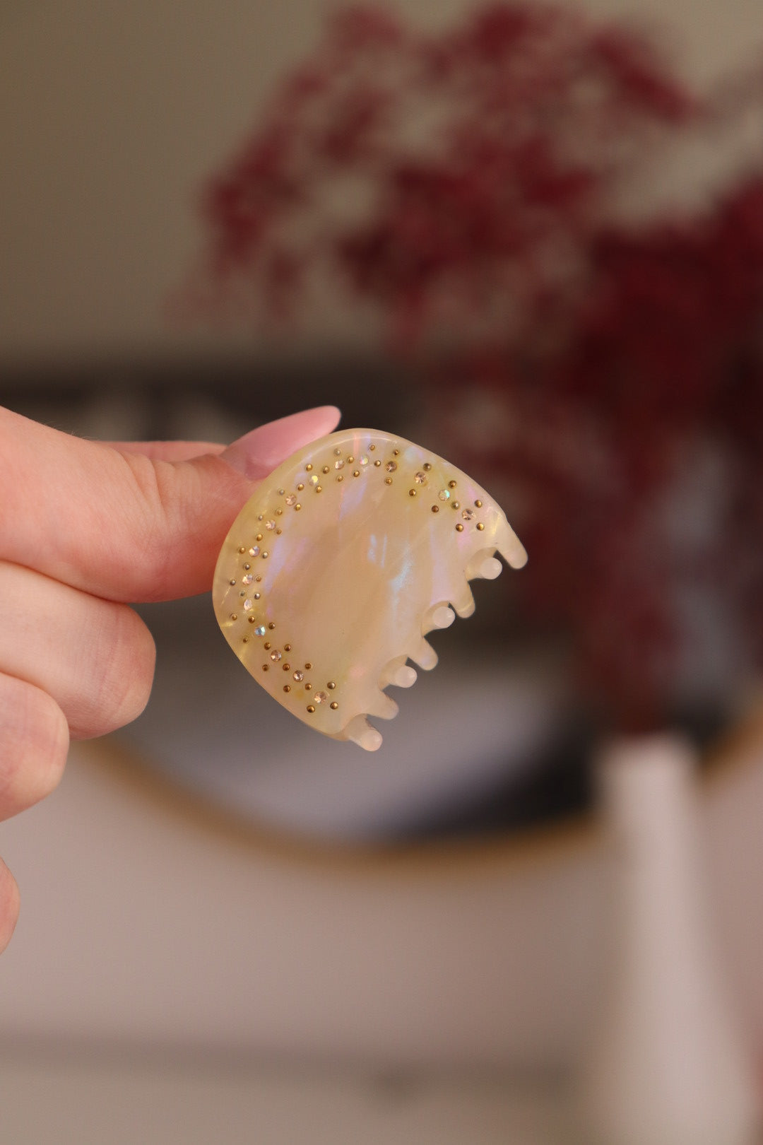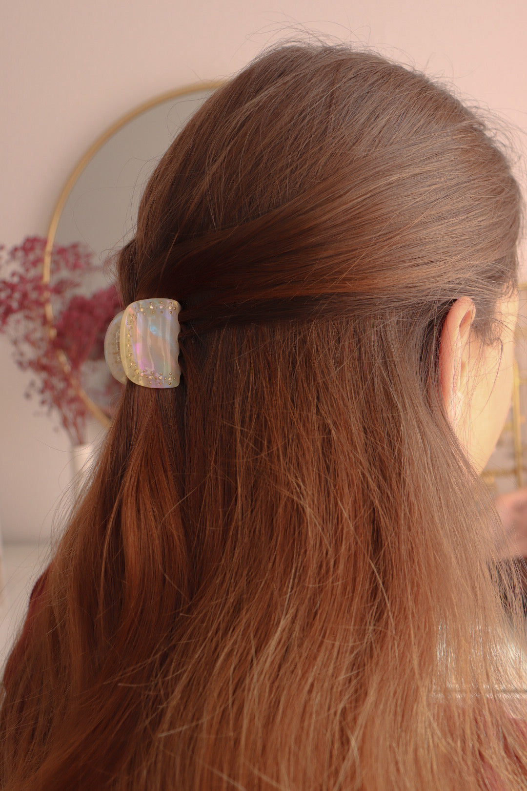 Die Haarklammer "Sea Pearl" vereint zeitlose Eleganz mit einem Hauch von Glamour. Ihr schimmerndes Perlmutt-Finish mit feinen Details sorgt für ein edles Highlight in deinem Haar - dezent, aber wirkungsvoll.