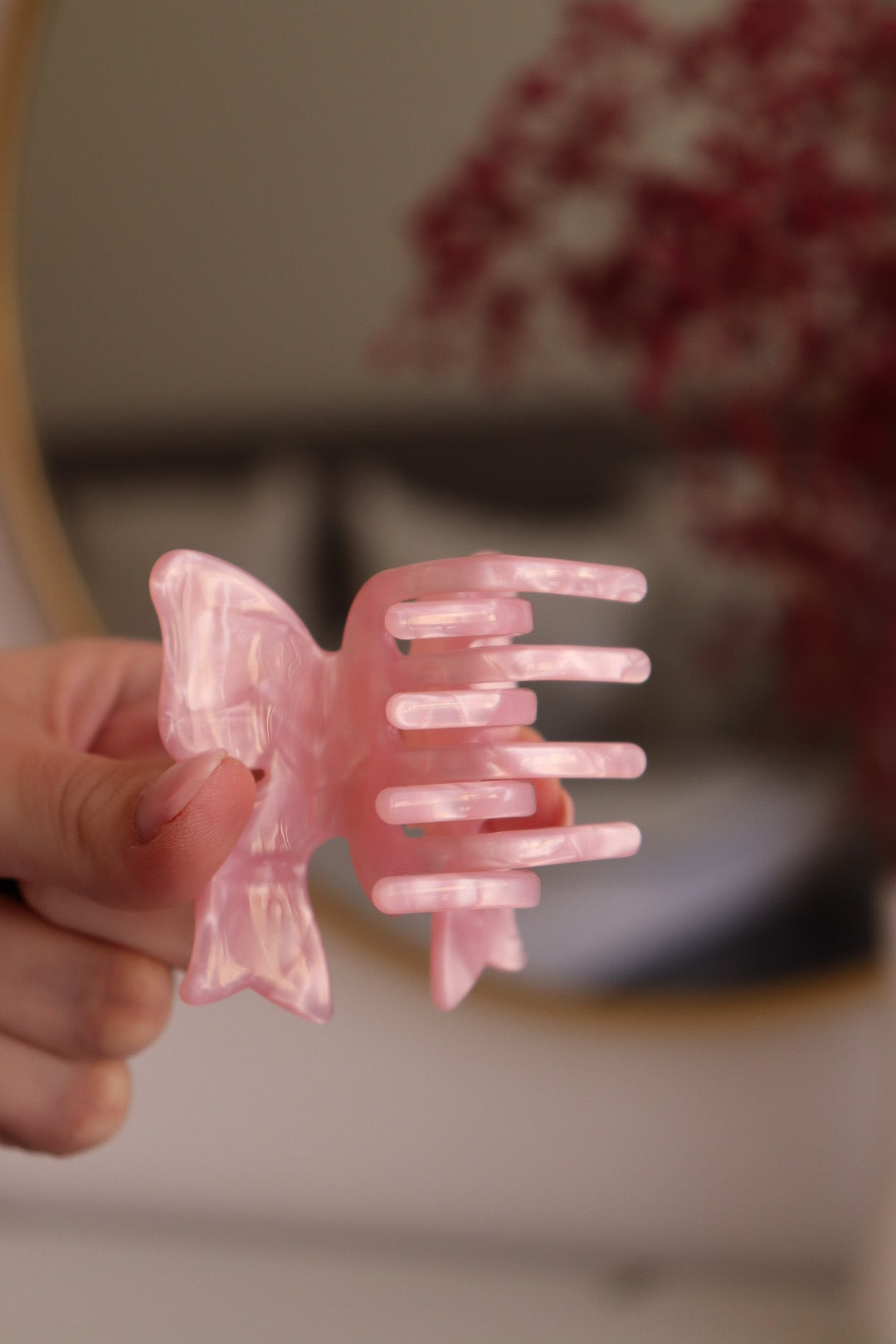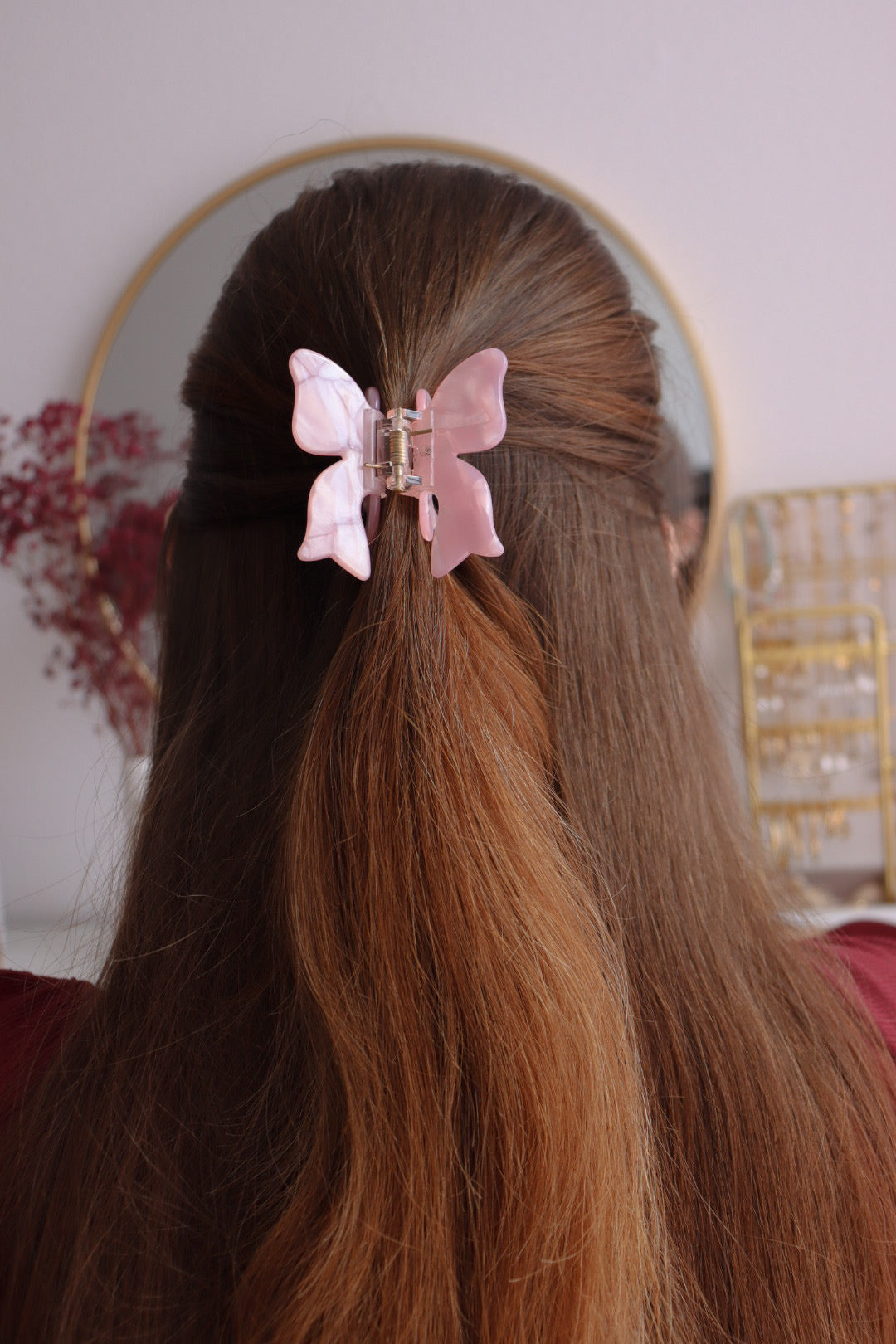 Verleihe deinem Haar einen Hauch von Eleganz mit dieser stilvollen Schleifen Haarklammer in zartem Rosé. Dank der robusten Federmechanik hält die Klammer das Haar sicher zusammen, ohne zu verrutschen. Ob für den Alltag oder besondere Anlässe, diese Haarklammer passt zu jedem Stil.